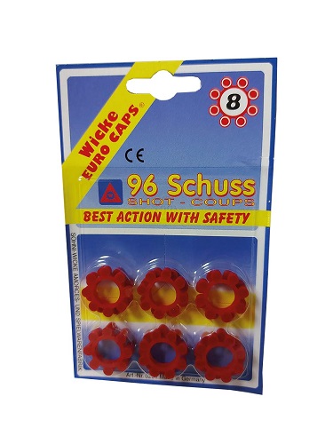 Speelgoed plaffertjes 8 schots – 12x ringen – voor plaffer pistool/revolver. Inhoud: 12x ringen plaffertjes van 8 schots dus totaal 96 schoten. Geschikt voor de speelgoed revolvers/pistolen met 8 schots.