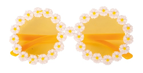 Hippie Flower Power-brillen in de vorm van madeliefjes voor een vrolijke, retro-look. Perfect voor festivals, carnavals en jaren 60-themafeesten.