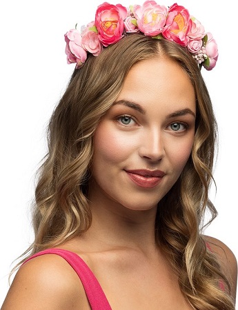 Voeg met deze mooie diadeem met roze bloemen een tropische touch toe aan je zomerse feestoutfit. Of je het nu als accessoire voor een festival, strandfeest of Hawaiiaans tuinfeest wil gebruiken, deze vrolijke bloemen tiara maakt in ieder geval je outfit helemaal compleet.