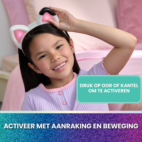 Met meer dan 20 geluidseffecten, lichtjes en geluiden die door beweging worden geactiveerd, stimuleert de hoofdband eindeloos rollenspel. Kinderen kunnen aan de linker- en rechteroor knijpen om te schakelen tussen drie leuke modi: Dance Party, Gabby Modus en Kitty Modus.