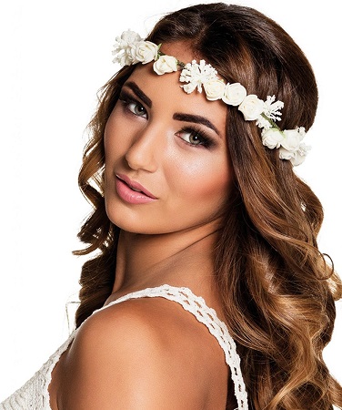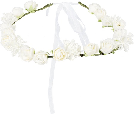 Een mooie elegante hoofdband met frisse witte bloemen voor een zomerse look. De ideale accessoire om een festival of strandfeest outfit een boho touch te geven, maar als je een hawaiiaanse thema kostuum voor carnaval compleet wil maken is deze hoofdband e