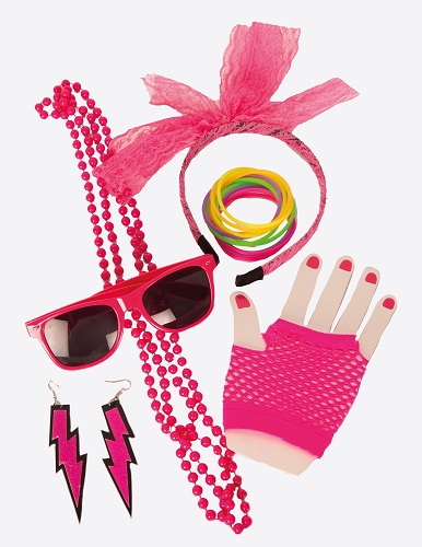 Jaren 80 accessoireset neon roze