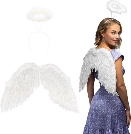 Deze hemelse set bevat alle accessoires die je nodig hebt om een betoverend engel kostuum samen te stellen. Of het nu bedoelt is voor carnaval, een themafeest of een cosplay evenement. De accessoireset bestaat uit sierlijke witte engelenvleugels (60 x 40
