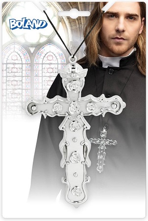 Dit stoere en gedetailleerde priesterkruis is de perfecte aanvulling voor een priester, monnik of non kostuum. De ketting heeft een groot zilver kruis met kleine roosjes als sierlijke details. Of je nu carnaval viert, naar een themafeest gaat, of een outfit samentstelt voor een cosplay event – dit kruis zorgt voor de finishing touch.