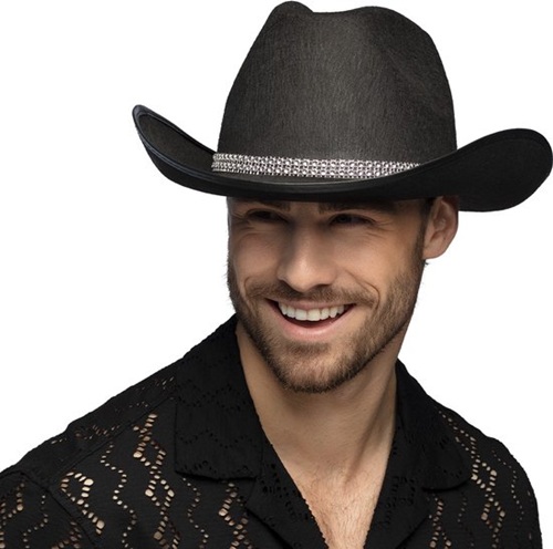 Deze zwarte cowboyhoed met strass steentjes is niet alleen heel leuk als toevoeging op jouw western kostuum voor carnaval, het is ook te gek als finishing touch wanneer je naar een hip festival gaat. Deze hoed heeft een glamoureuze en stoere uitstraling waardoor je ‘m voor diverse gelegenheden gebruikt kan worden. Het maakt je outfit helemaal compleet!