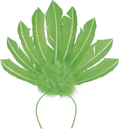 Deze Braziliaanse haarband is voorzien van meerdere groene veren, versierd met zilverkleurige glitters. Het is ongeveer 25 cm groot. De braziliaanse haarband zal perfect zijn om een exotisch carnavalskostuum te perfectioneren!