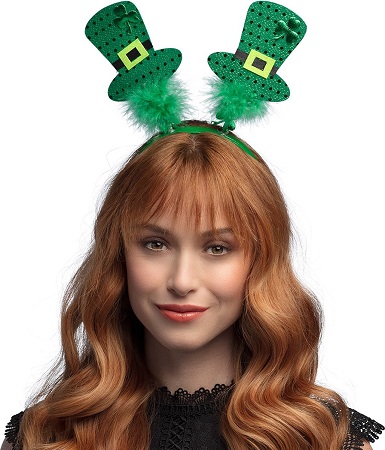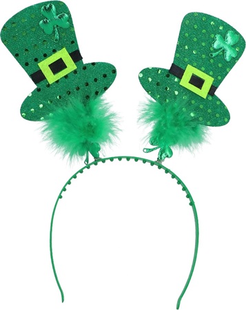 Maak je klaar om St. Patrick’s Day te vieren met deze leuke groene diadeem met glitters. Deze grappige tiara voor volwassenen met bewegende hoedjes versierd met klavertjes geven je feestoutfit een speelse touch die perfect past bij de gezellige Ierse feestdag.