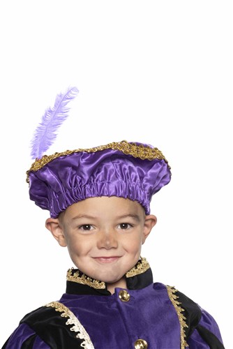 Pieten Baret Satijn Met Veer Paars