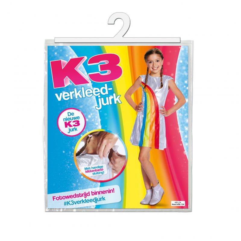 Het K3 kleedje is gemaakt van nylon en heeft een makkelijk te g