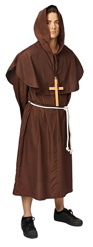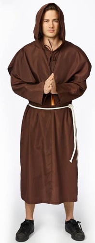 Bruine pater met kap. Paterskleed met kap; koord. Kruis apart te verkrijgen