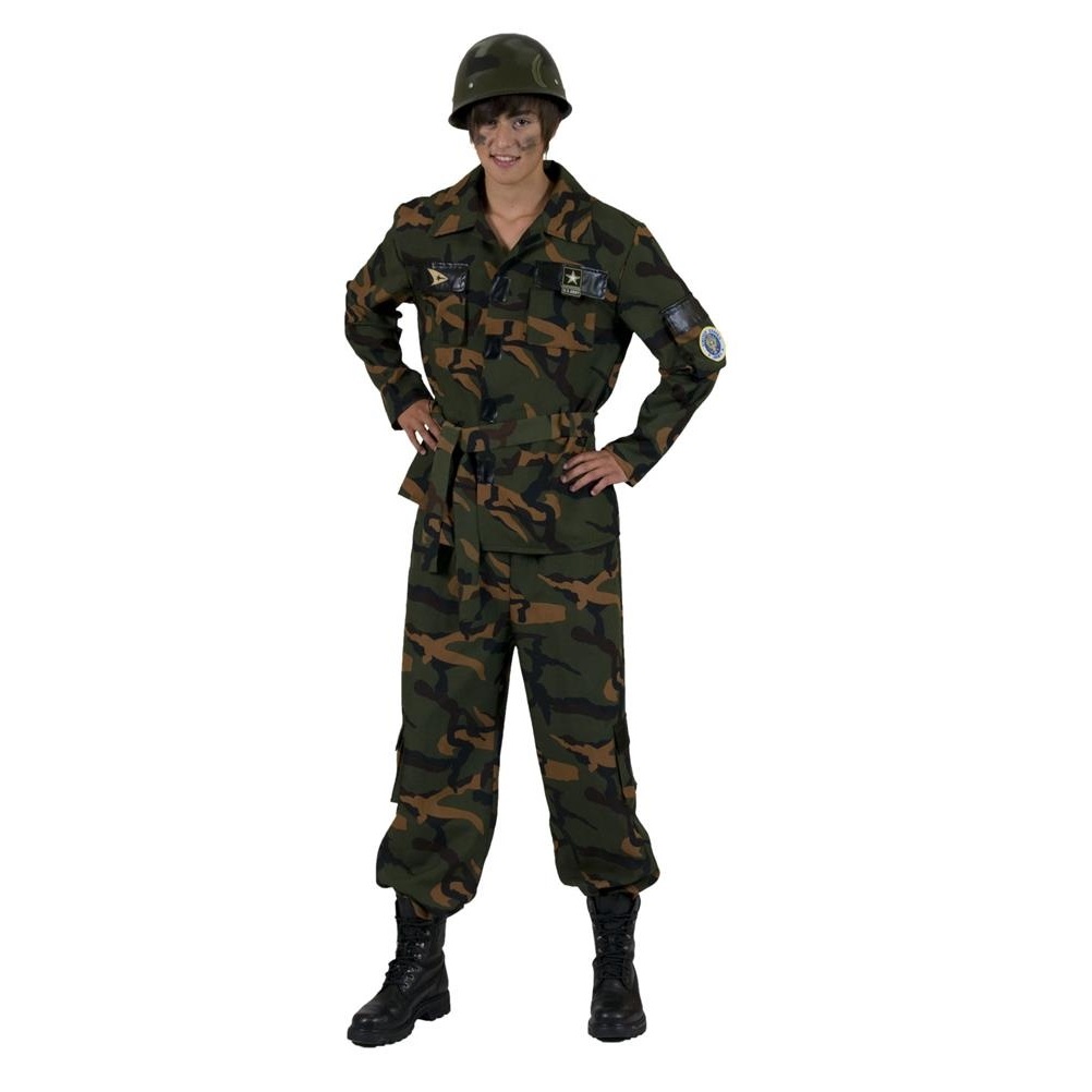 Met dit stoere camouflagekostuum (hemd, broek en riem) ben je net een echte legersoldaat uit het leger (helm apart te kopen)