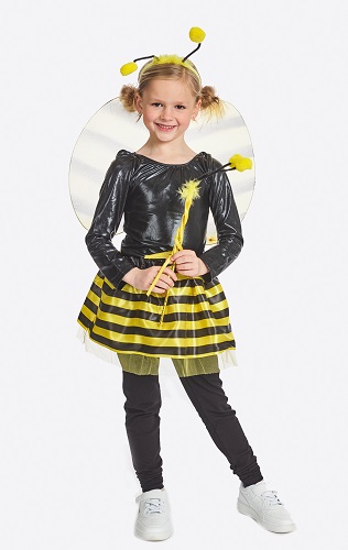 Set Bij 4-delig – Bestaande uit: Een rokje, vleugels, diadeem en staf – Voor kinderen van 4 tot 6 jaar