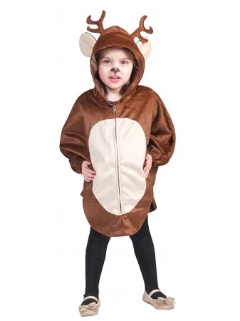 Schattig rendierkostuum voor kinderen: Kinderponcho met capuchon en aangehechte oren met gewei in bruin en beige.