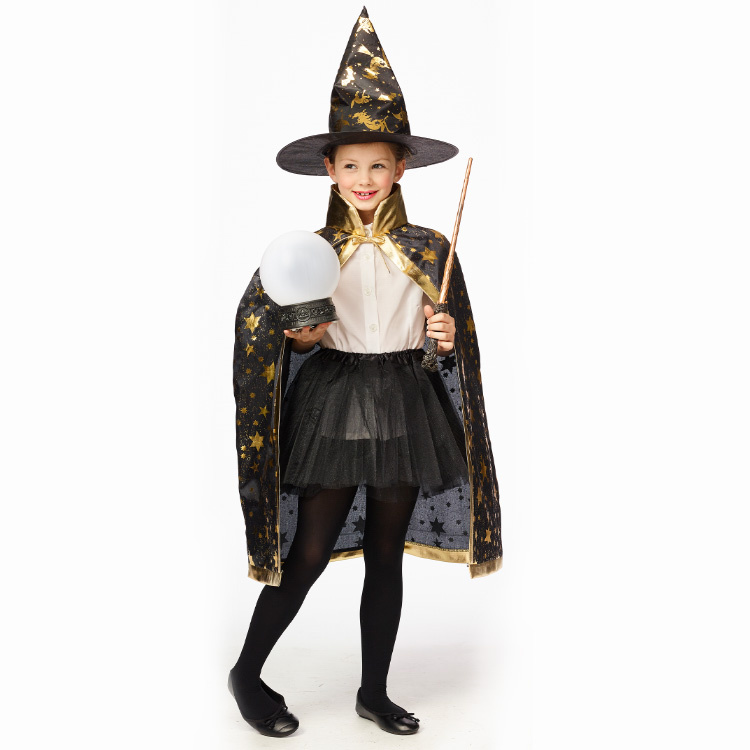 Zwarte cape met gouden boord en sterren – ZONDER HOED