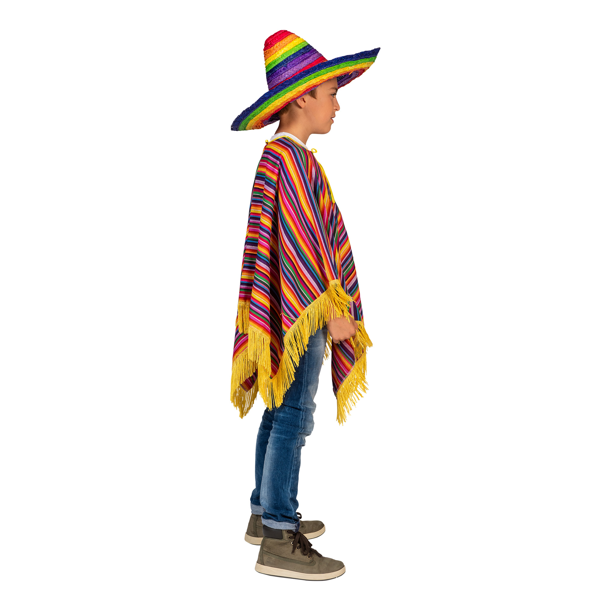 Ay Caramba! Met deze kleurrijke Mexicaanse poncho voor kinderen is de fiesta helemaal compleet! Combineer naar hartelust met sombrero’s in verschillende kleuren.