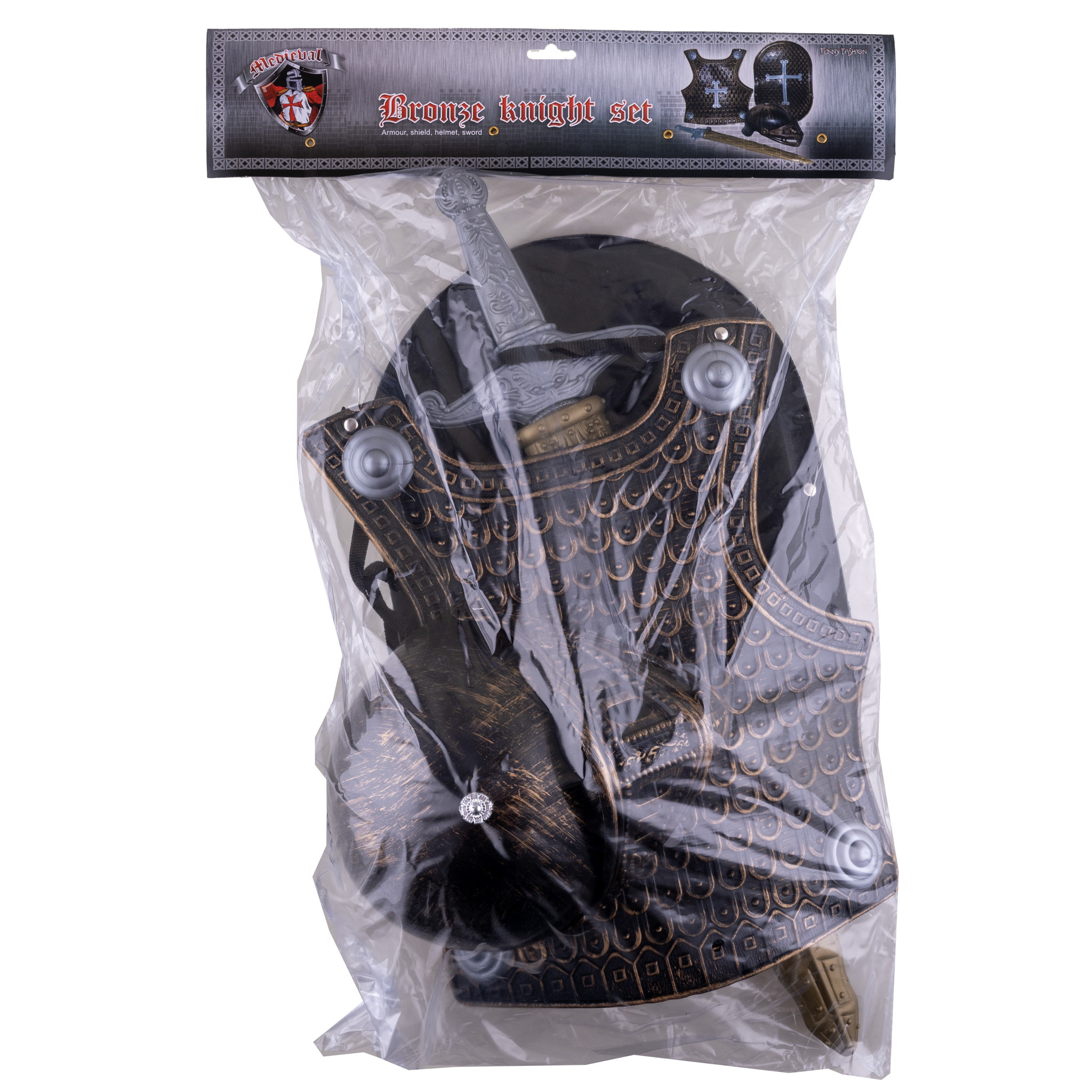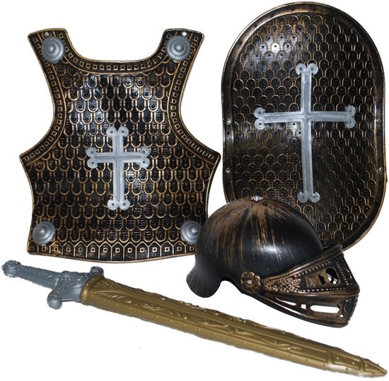 Ridderset brons – 4-delig (helm, borstschild, zwaard, schild)