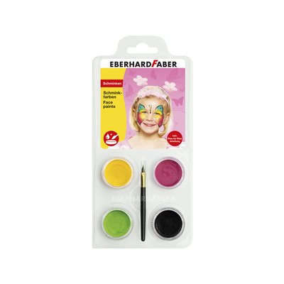 Schmink in briljante kleuren en van professionele kwaliteit. Geschikt voor school, feestjes, gezicht- en body painting. Dermatologisch getest. Zeer snel drogend, veegvast, afwasbaar met water en zeep en zeer goed dekkend. Set 4 kleuren incl. penseel. Kleu