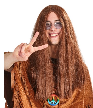 Pruik Hippie lang bruin