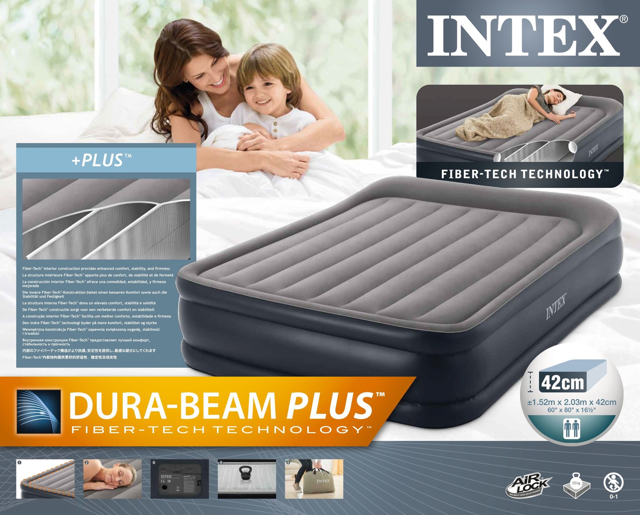 Grijze kleur. Afmetingen: (L) 2,03 x (B) 1,52 x (H) 0,42 m. De Deluxe Pillow Rest Raised 2-zits opblaasbare matras is een matras uit de Plus-serie. Deze INTEX elektrisch opgeblazen matras is ontworpen voor gebruik binnenshuis. Door de grootte kan het e