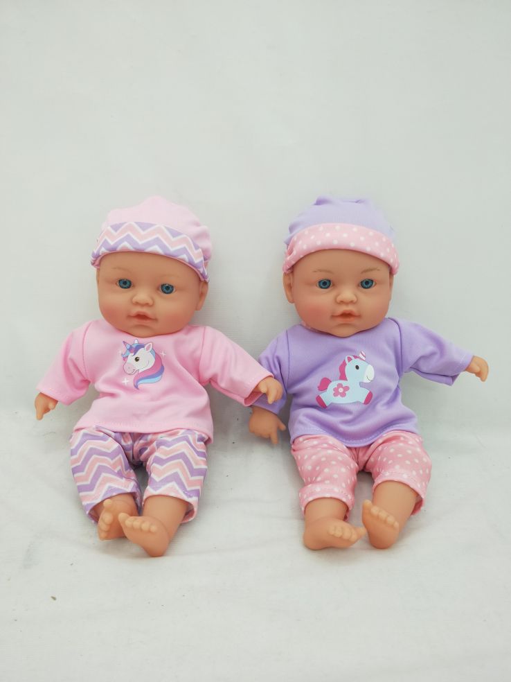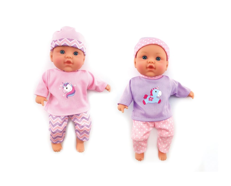 Babypopje (soft body) met geluid – 31cm – Roze OF Paars – 1 exemplaar