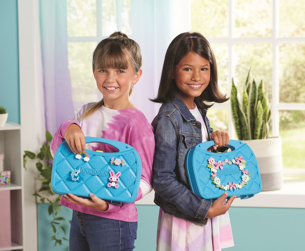 Deze complete set Aquabeads bevat meer dan 900 kralen in 24 kleuren, draagkoffer met flip-tray, Aquabeads-pen, sproeier, creatiebord, bevestigingspinnen, patroonvellen en een handleiding