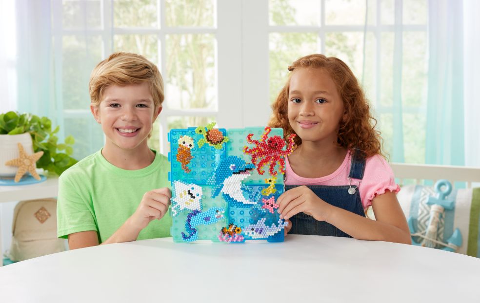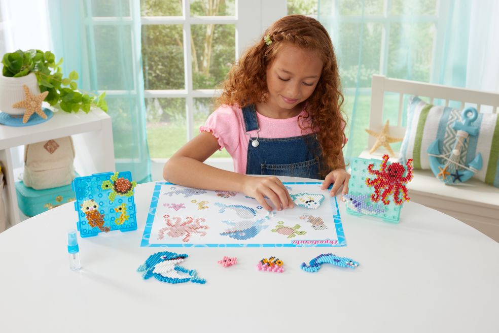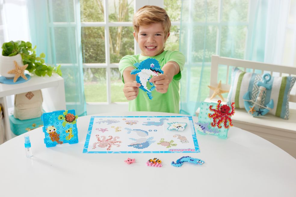 Het enige wat ze hoeven te doen is de parelkralen op het bijgeleverde sjabloon plaatsen, water toevoegen en laten drogen. Geen strijkbout of warmte nodig! De Aquabeads Ocean Dierenset is een geweldige manier om de fijne motoriek en creativiteit van kin