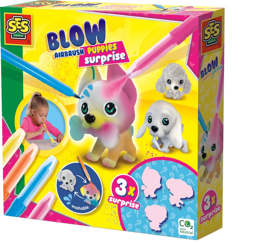 SES Creative – Blow airbrush pens – Puppy’s surprise (3stuks)