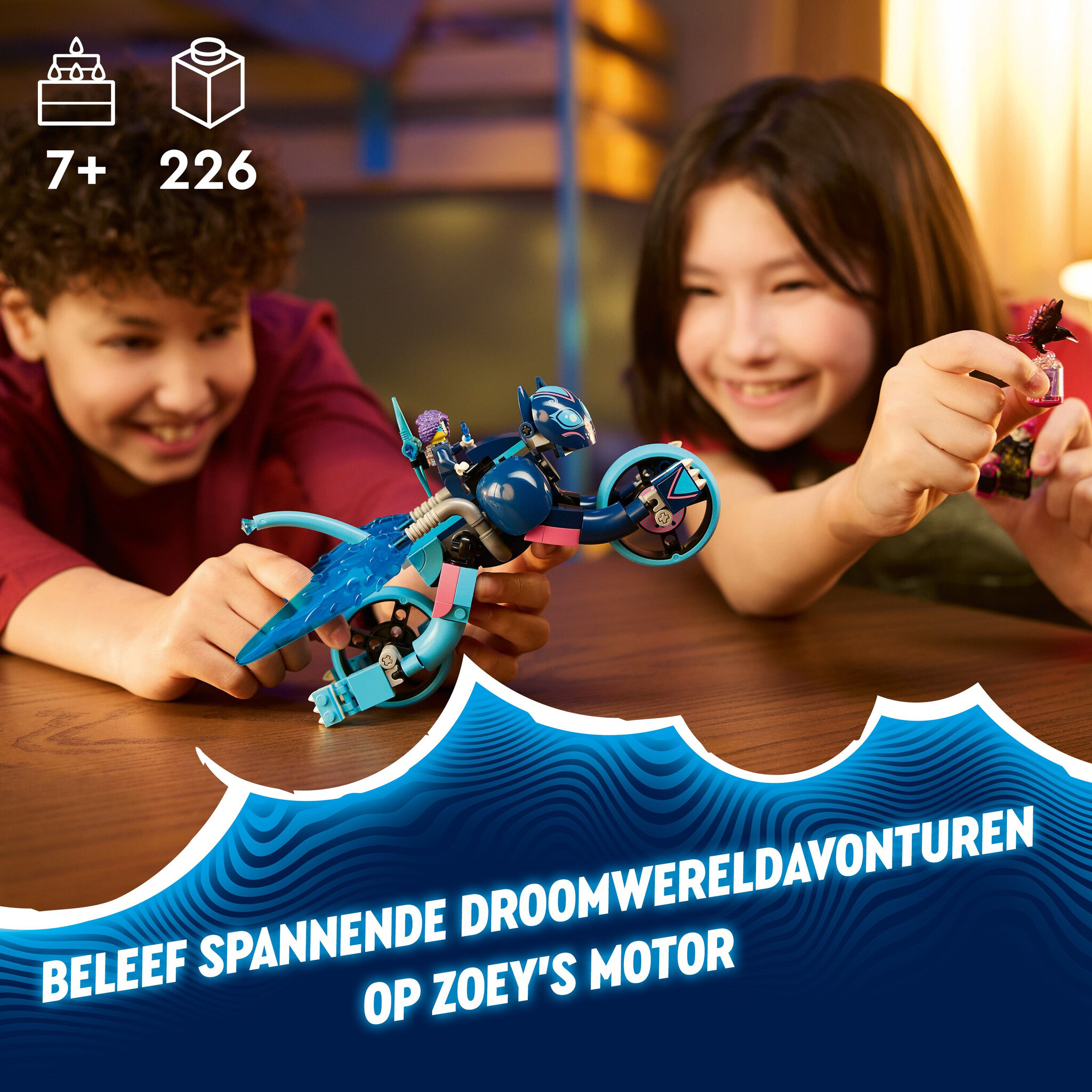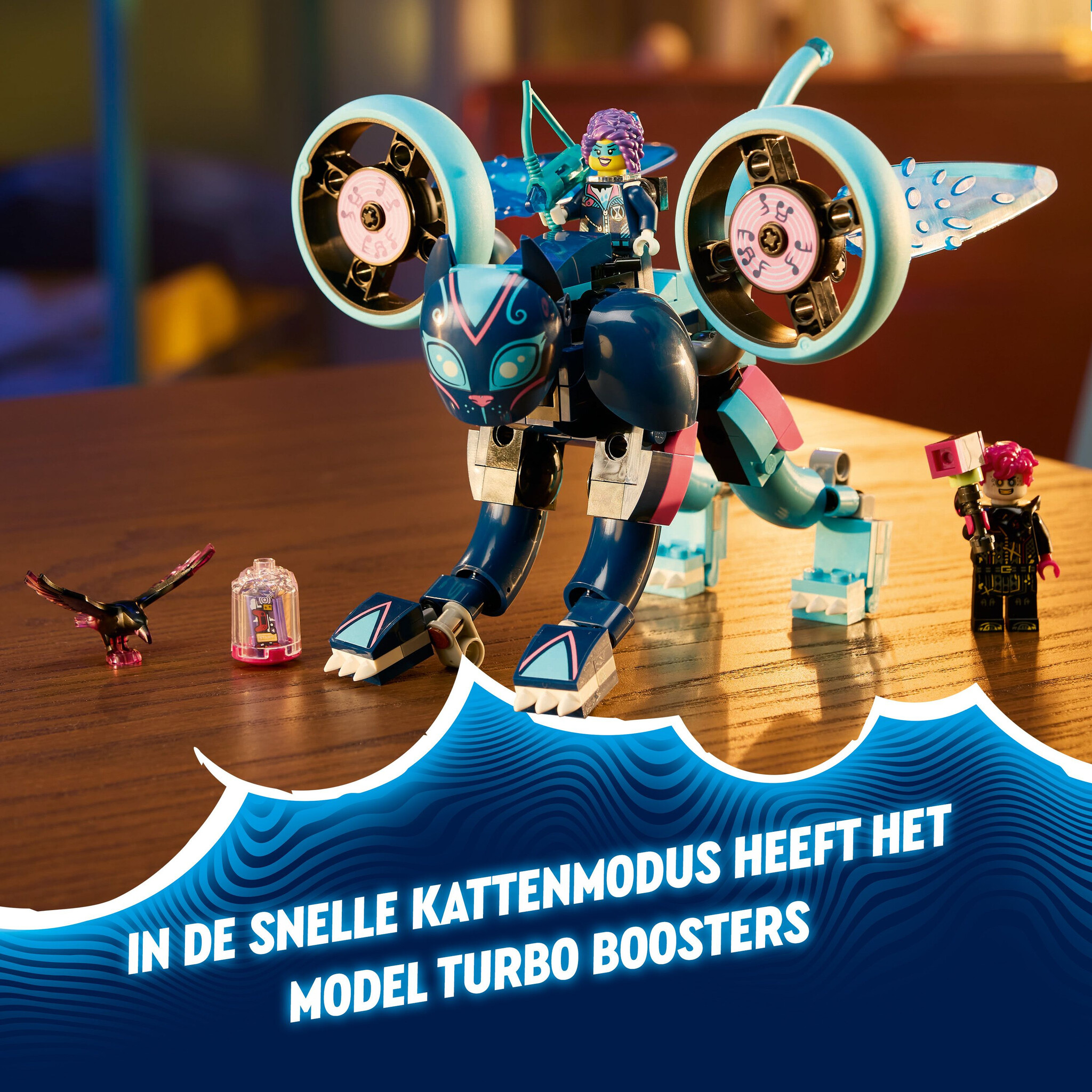De raaf van de Neder Heks heeft een herinnering gestolen en kinderen moeten Zoey helpen om die terug te vinden! Er zijn 2 bouwmogelijkheden: jonge dromers zullen het geweldig vinden om de verstelbare kattenfiguur in elkaar te zetten voordat ze hem tran