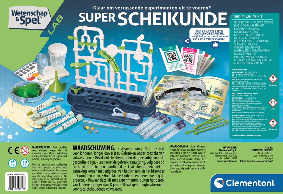 Duik in de fascinerende wereld van scheikunde met de Clementoni Super Scheikunde set! Met je eigen laboratorium ontdek je hoe chemische reacties werken, terwijl je spelenderwijs leert meten, mengen en experimenteren zoals een echte wetenschapper.