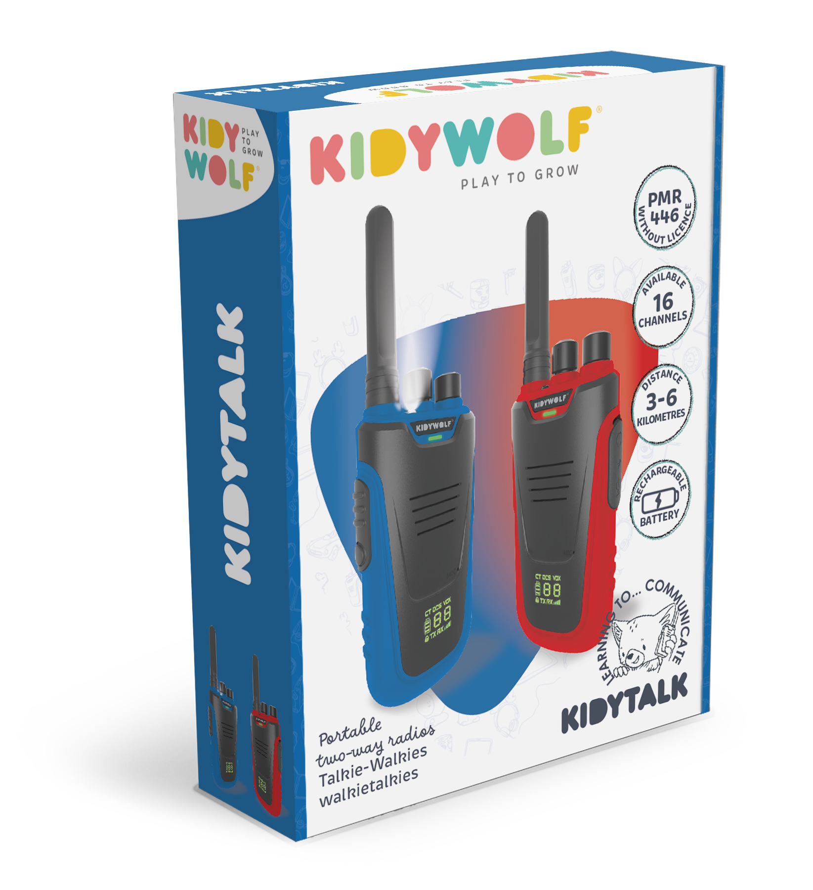 Met de Kidywolf Kidytalk walkie talkies blue-red zijn jong en oud klaar voor geweldige avonturen! Met een bereik van 6 km kan je ze gebruiken om buiten te spelen of om een geheim gesprek verder te zetten van op afstand. Deze portofoons hebben hun eigen op