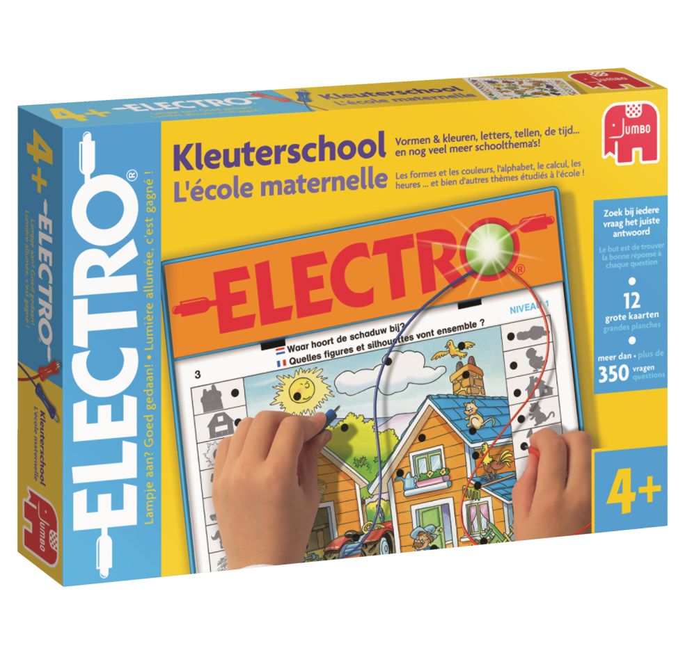 Electro biedt al tientallen jaren veel speel- en leerplezier door middel van educatieve thema’s in combinatie met slimme elektronica: een leuke manier om te leren over vormen & kleuren, letters, tellen, de tijd en nog veel meer schoolthema’s! Verbi