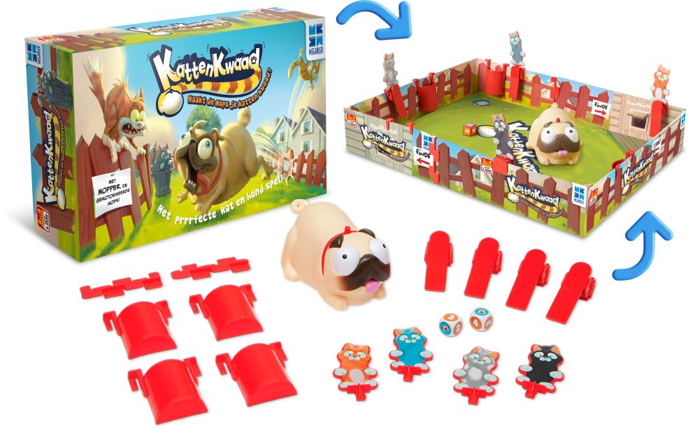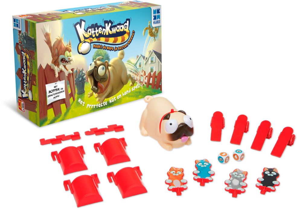 Kattenkwaad is het vrolijke actiespel waarin katten proberen een rondje rond het hek te maken, terwijl de ondeugende mopshond Mopper hen dwarszit. Dankzij Mopper komt het spelbord letterlijk tot leven, waardoor elk potje vol spanning, lachwekkende verrass