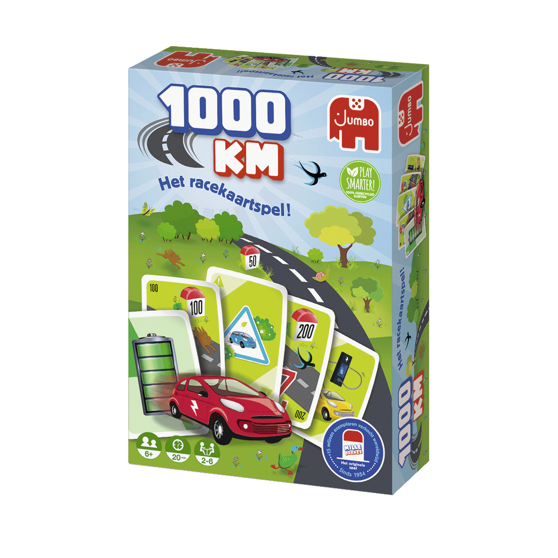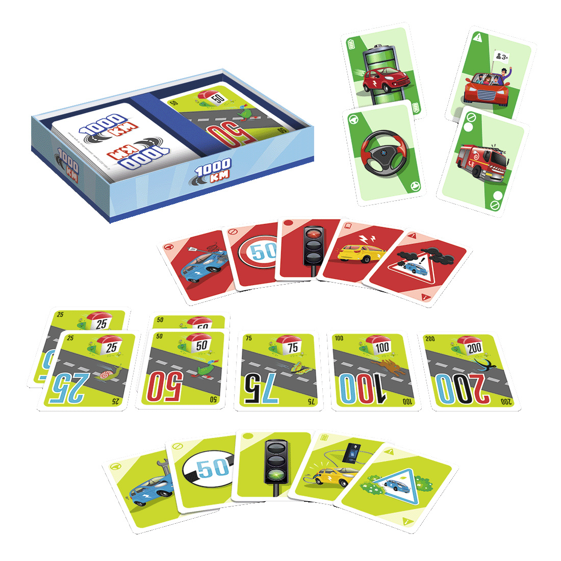 Een kaartspel voor het hele gezin! Get ready, set, go! Speel je kilometerkaarten en race met je elektrische voertuig naar de finish van 1000 kilometer. Je kunt de anderen vertragen met aanvalskaarten zoals een “Lege batterij” of “Vervuilingswaarschuwin