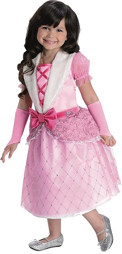 Kostuum Barbie Princes Rosebud voor meisjes bestaande uit een jurk en handschoenen.