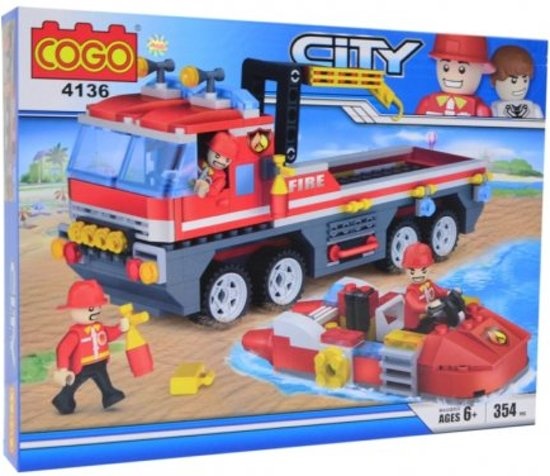 Cogo Blocks CITY – Brandweerwagen met boot 354stuks