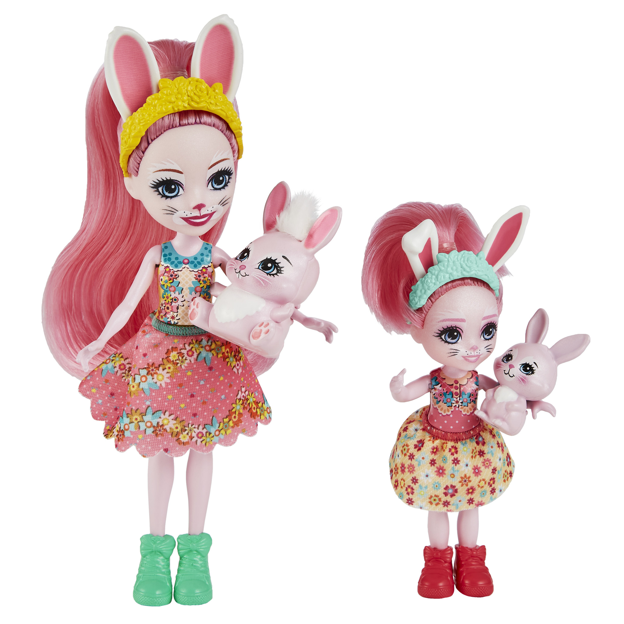 Maak kennis met de Enchantimals™ zusjes Konijn! Ga op avontuur met Bree Konijn en haar zusje Bedelia. Deze snoezige zusjes doen graag alles samen, vooral lekkere dingen bakken! Elke pop heeft ook een eigen dierenvriendje. Kinderen vinden het heerlijk om met deze gezellige zusjes te spelen. De 4 figuren in deze set zorgen voor extra Enchantimals speelplezier. Afwijkende kleuren en versieringen mogelijk.