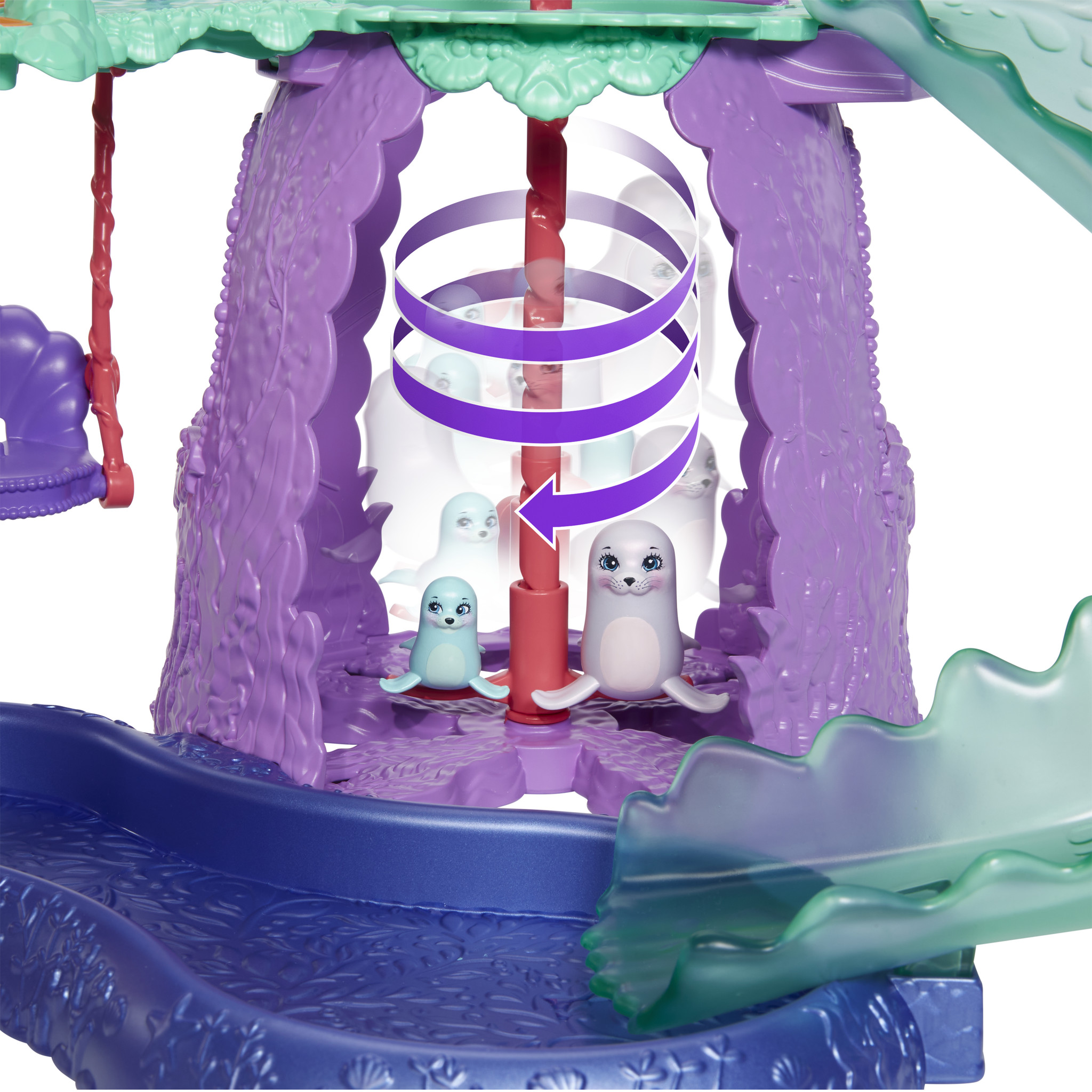 Welkom bij de Enchantimals Ultieme Waterparkspeelset! Kinderen vinden het heerlijk om spannende wateravonturen te beleven met Shayda Zeeleeuw (15,2 cm), Catch en hun zeedierenvrienden. Deze Enchantimals waterparkspeelset bevat talloze manieren om te spelen, zoals een zwembad, een glijbaan, een schommel, een draaipaal en nog veel meer! Voeg gewoon water toe en geniet van de waterpret. Kinderen vinden het heerlijk om een dagje in het waterpark na te spelen met accessoires zoals zwembadspeeltjes, een stoel en meer. Speel samen met deze speciale Enchantimals vriendjes! Kleuren en versieringen kunnen afwijken.