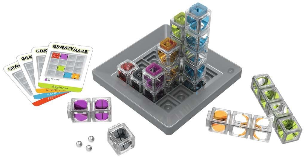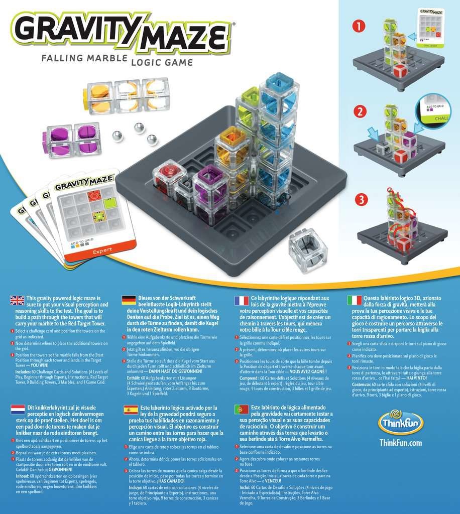 Wie kan de transparante torens op het spelbord combineren zodat de metalen kogel door alle torens rolt en in de rode toren komt? Een echte uitdaging, want de torens van verschillende hoogte hebben binnenin gaten, schuine kanten maar ook vlakke stukken.