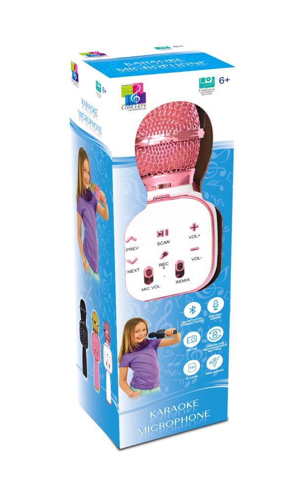 Karaoke microfoon roze - 6,6x5,9x22,8 cm. 6+. Lihium-ion 3.7V 1200mAh. 7011