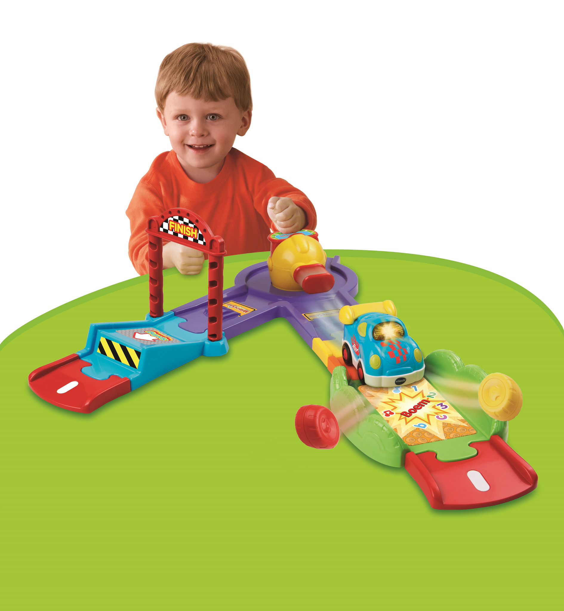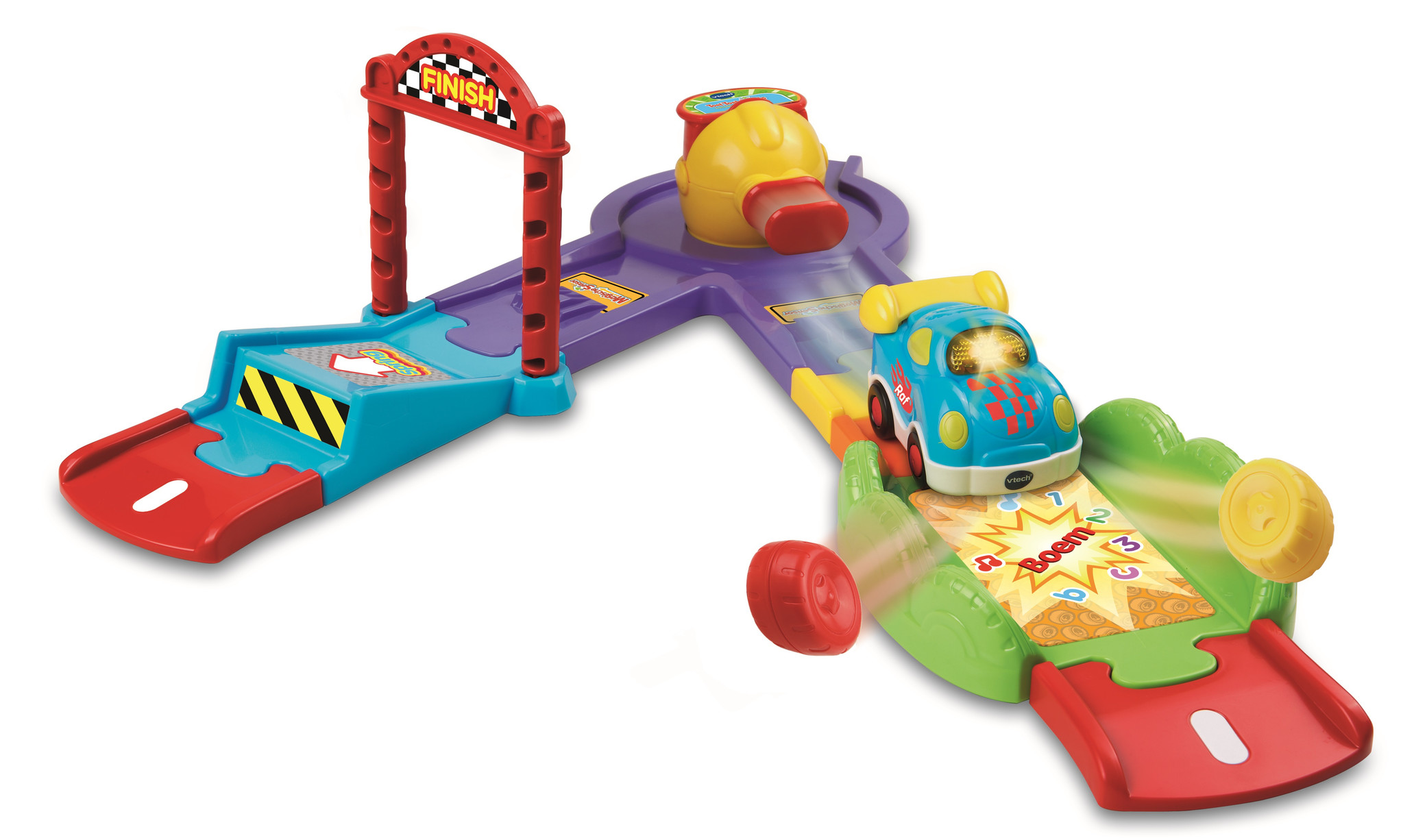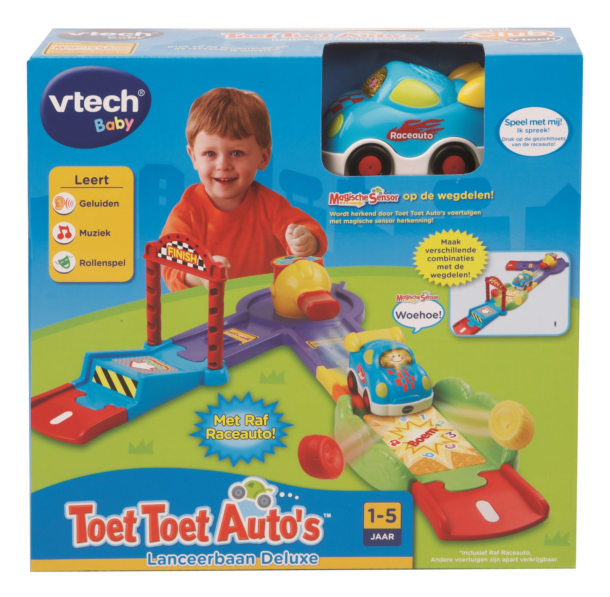 Luxe uitvoering van de Lanceerbaan! Druk op de lanceerknop en de raceauto schiet vooruit. Eenvoudig te koppelen aan andere Toet Toet Auto’s speelsets. Met Magische Sensor die door de Toet Toet Auto’s voertuigen wordt herkend. Inclusief Raf Raceauto. – Klaar om te racen? Daar gaan we! – Druk op de lanceerknop om de raceauto over de schans te laten springen of laat hem tegen de banden botsen – Rijd met Raf Raceauto en andere Toet Toet Autos voertuigen (apart verkrijgbaar) over de – Magische Sensors* en luister naar de vrolijke reacties – Koppel de onderdelen aan andere Toet Toet Autos speelsets (apart verkrijgbaar) voor nog meer leer- en speelplezier – Inclusief Raf Raceauto – 6 melodietjes en 2 gezongen liedjes – Volumeschakelaar – Automatische uitschakeling