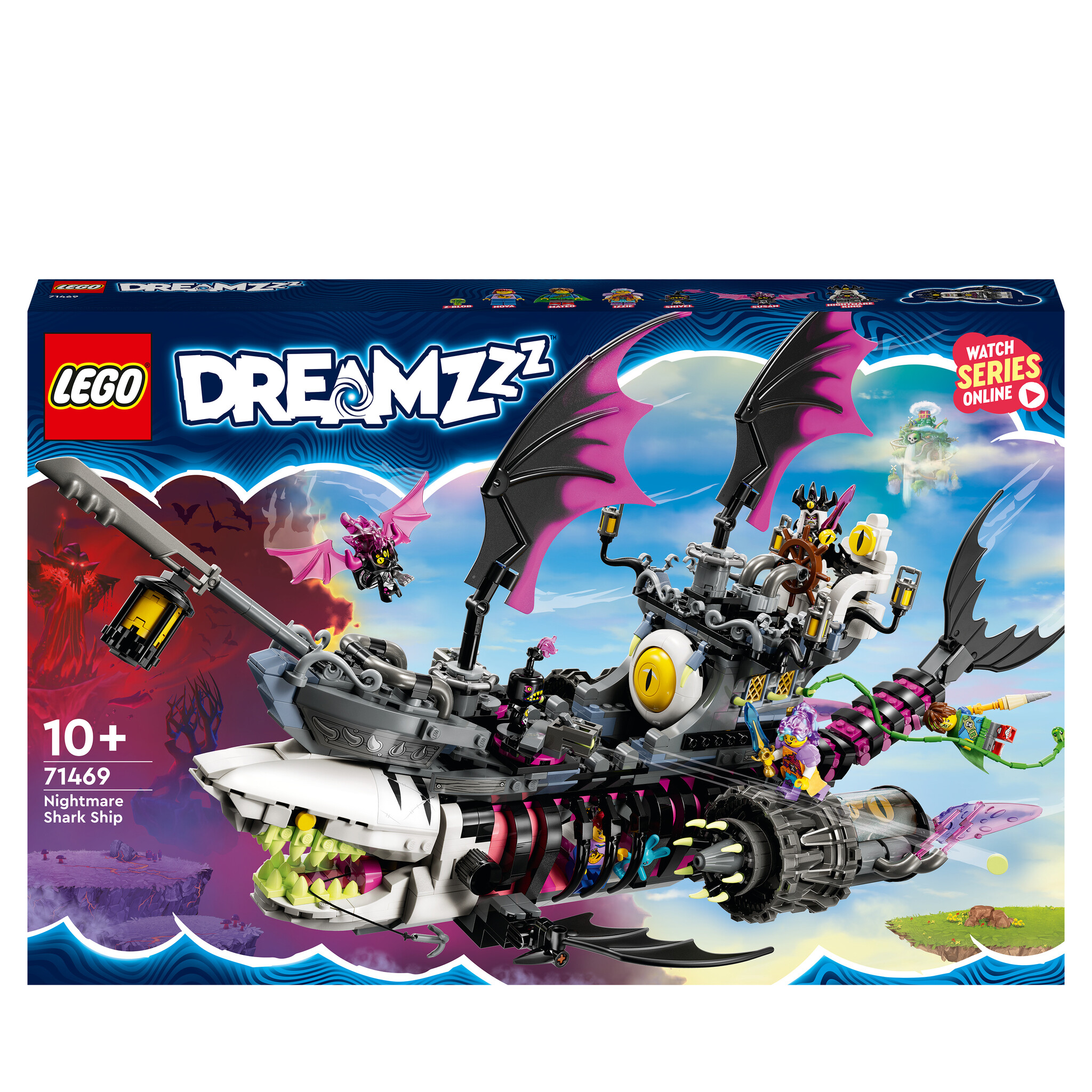 Kinderen vanaf 10 jaar kunnen in de actie van de droomwereld duiken met deze LEGO DREAMZzz Nachtmerrie haaienschip (71469) bouw- en speelset. De Nachtjager heeft Izzie’s favoriete knuffel gevangen en gecombineerd met een piratenschip om een gevaarlijk mon