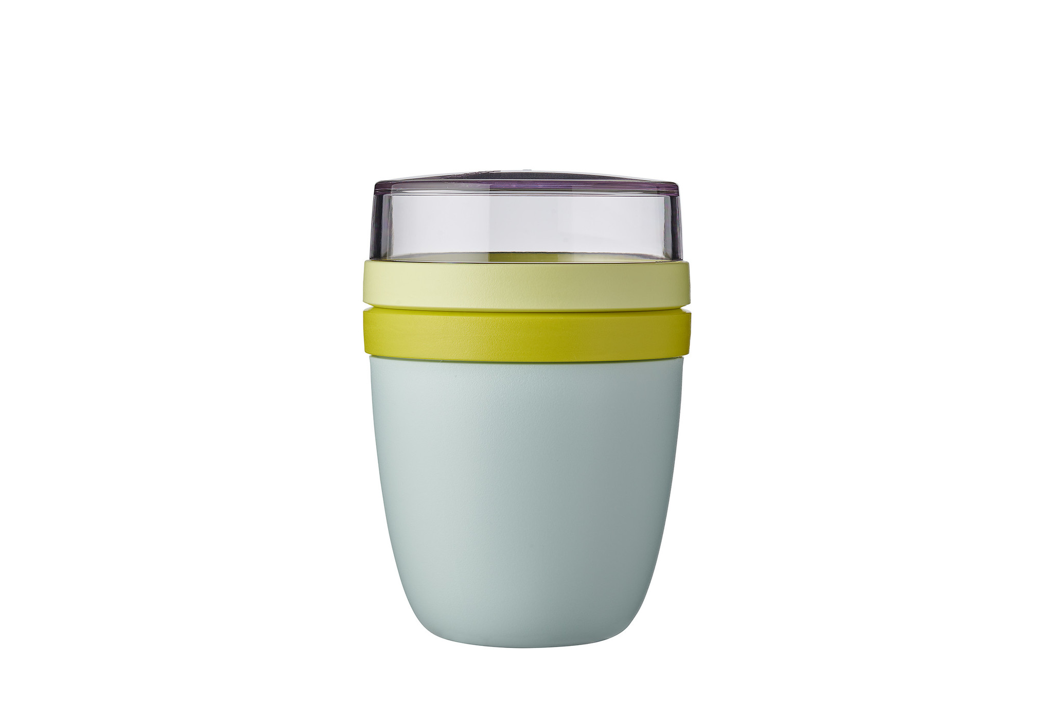 De Lemon Vibe lunchpot Ellipse is één handig product om je lunch of tussendoortje mee te nemen, maar heeft twee verschillende compartimenten om de verschillende ingrediënten gescheiden te houden. Door middel van een eenvoudige draaibeweging scheid je de twee compartimenten om de ingrediënten te mixen. Dé oplossing om geknoei tijdens het mengen te voorkomen.