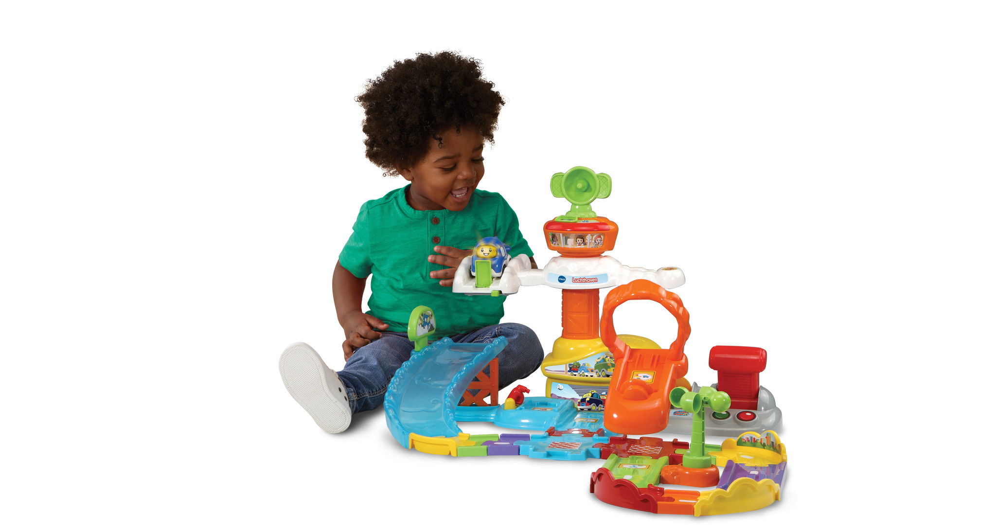 Rijd met Valentijn Vliegtuig of een andere Toet Toet Auto (apart verkrijgbaar) naar de lanceerder en beweeg de hendel omlaag om het voertuig te laten opstijgen. Draai de wolk rond de toren om het voertuig te laten vliegen en draai vervolgens de radar tegen de klok in om het voertuig te laten landen. Verbind de luchthaven met andere speelsets voor nog meer speelplezier.