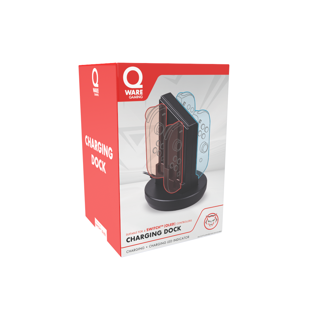 Dit Qware-oplaadstation voor Nintendo Switch is ontworpen om maximaal 4 Switches-controllers te bevatten die razendsnel kunnen worden opgeladen. De led-verlichting aan de bovenkant geeft aan wanneer je Joy-Con controllers volledig zijn opgeladen en je