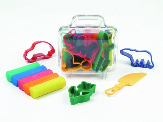 Pastel klei 5 rollen + accessoires in transparant koffer