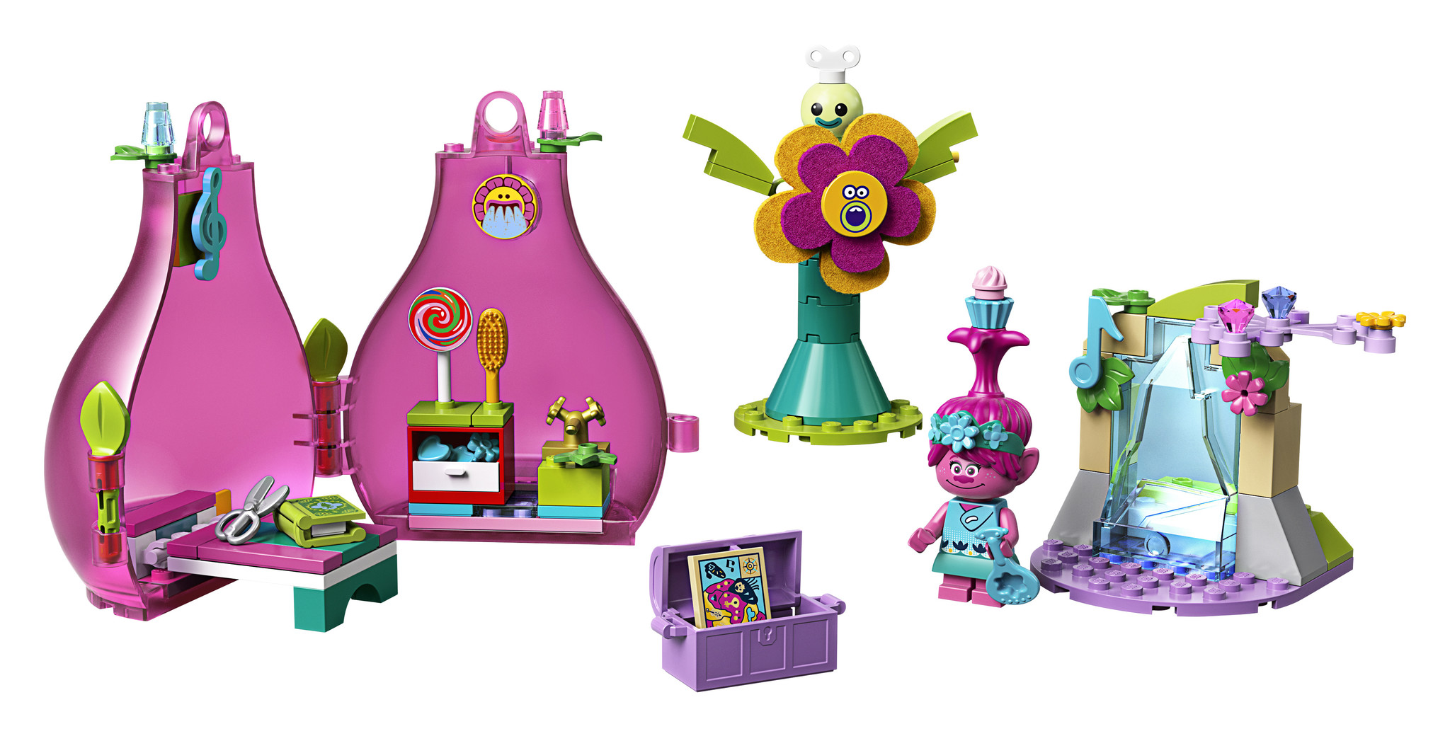 Kom langs in Poppy’s huisje en zie hoe ze zich voorbereidt op het avontuur van haar leven. Begin de dag met een knuffel en help Poppy vervolgens haar haren te stylen met cupcakes, hartjes en bloemen. Ga daarna op zoek naar de plattegrond voor een onvergetelijke reis langs alle muzikale landen. En als je met Poppy onderweg bent, is er natuurlijk altijd tijd voor wat plezier en vermaak, dus stop bij de grote vilten bloem en laat Poppy aan haar haren bungelen!