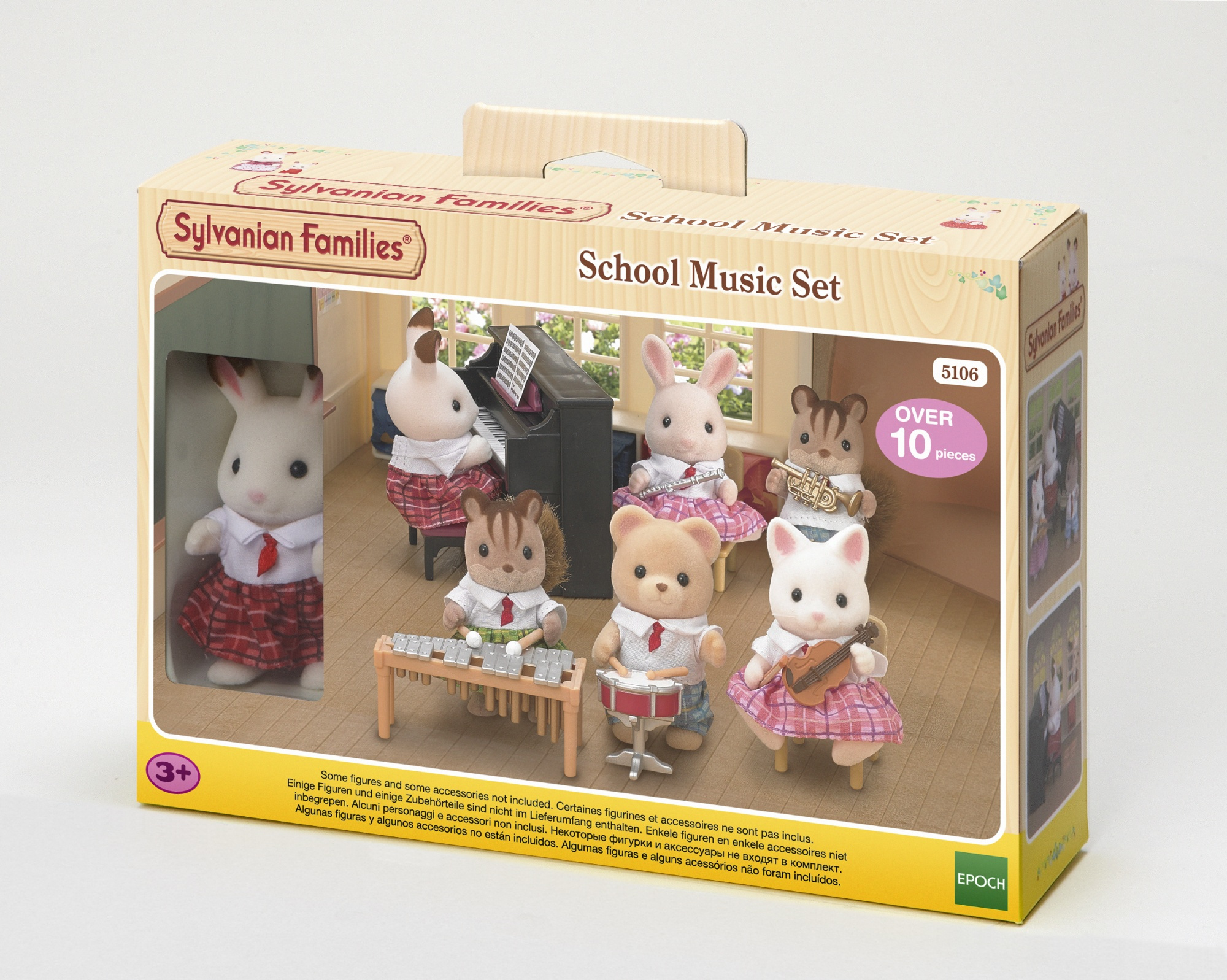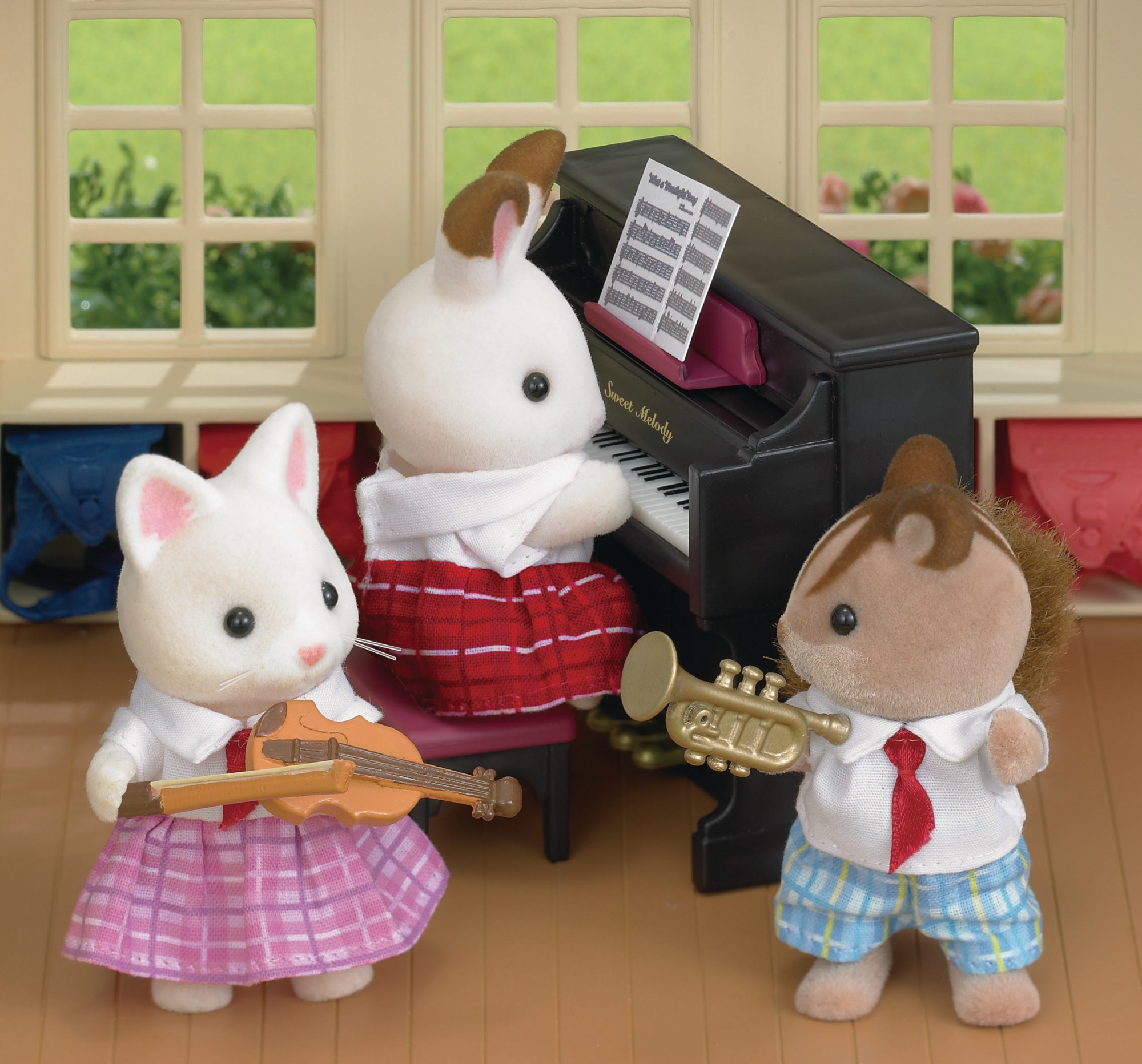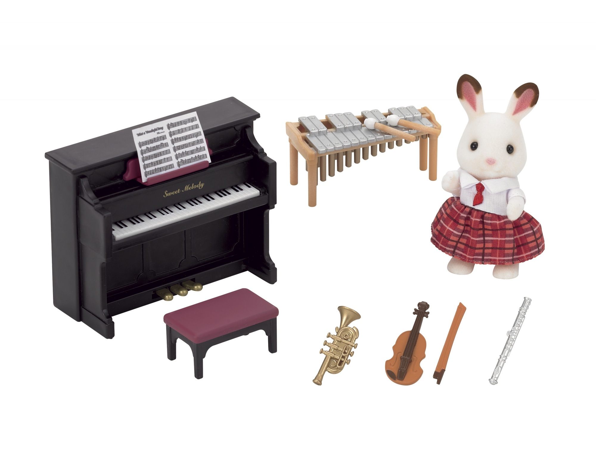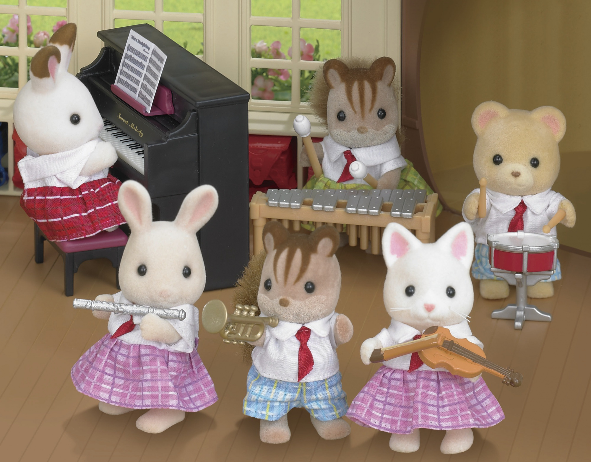 Luna Chocoladekonijn vindt de muzieklessen op school geweldig. Met deze set kan ze oefenen op de piano, de xylofoon, het drumstel, de fluit en de trompet. Met zo veel instrumenten kan je alle Sylvanians wel een instrument leren bespelen! Deze set is inclusief Luna Chocoladekonijn in haar schooluniform.