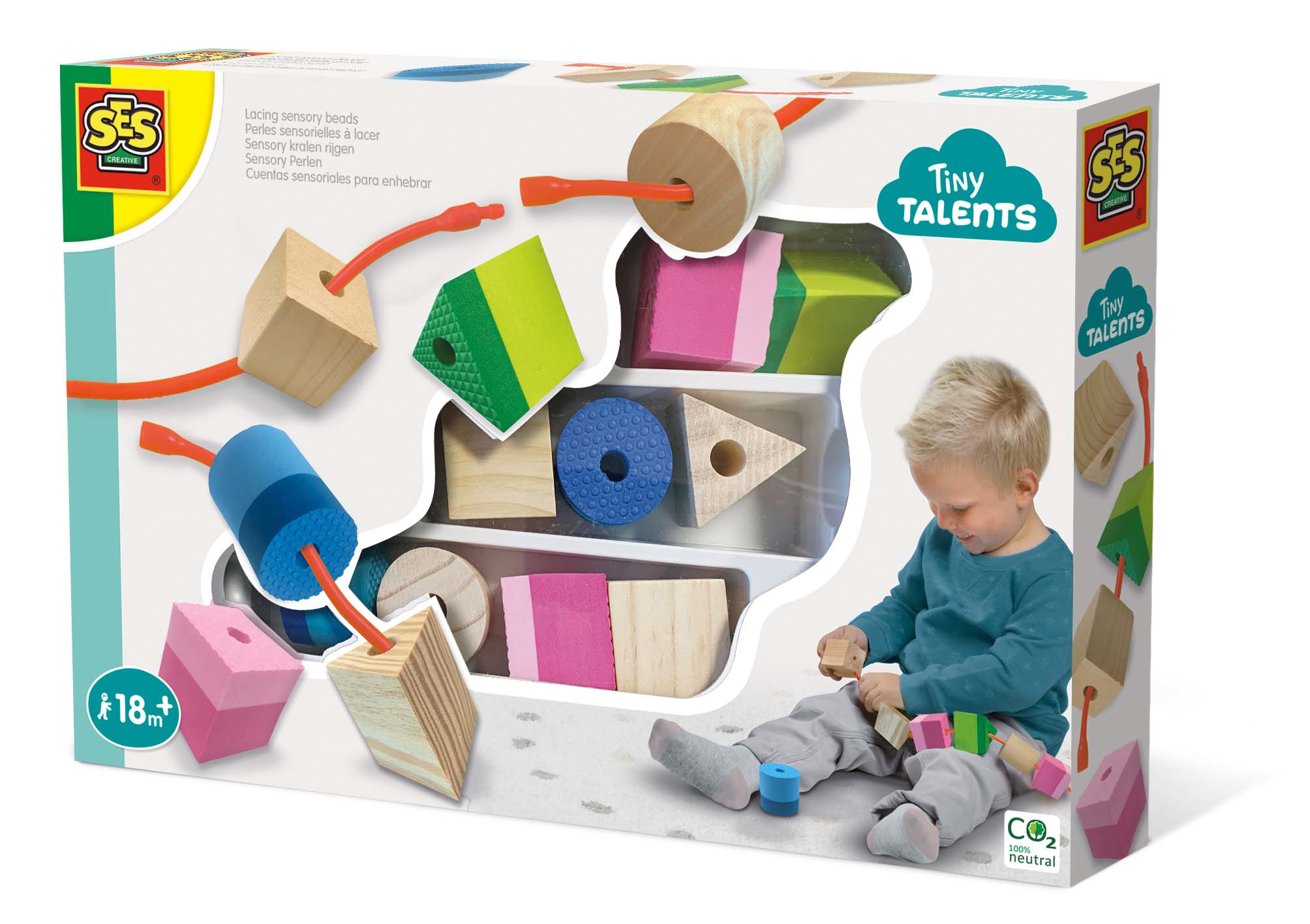 Met SES Sensory kralen rijgen ontdek je met je zintuigen verschillende vormen, materialen, kleuren en texturen terwijl je een mooie ketting maakt. Het veilige koppelsnoer bestaat uit losse onderdelen waardoor je niet verstrikt raakt in de ketting en je