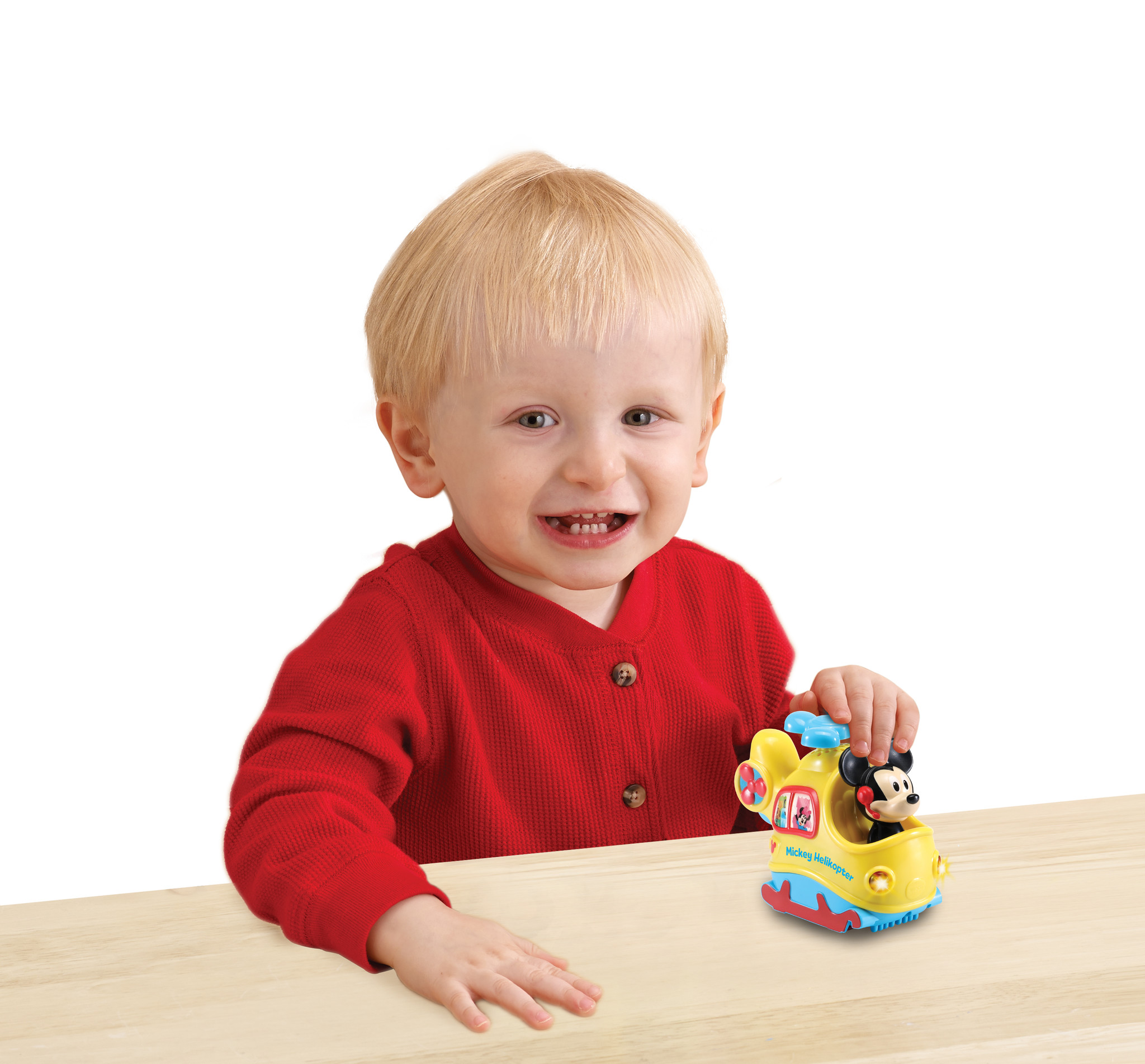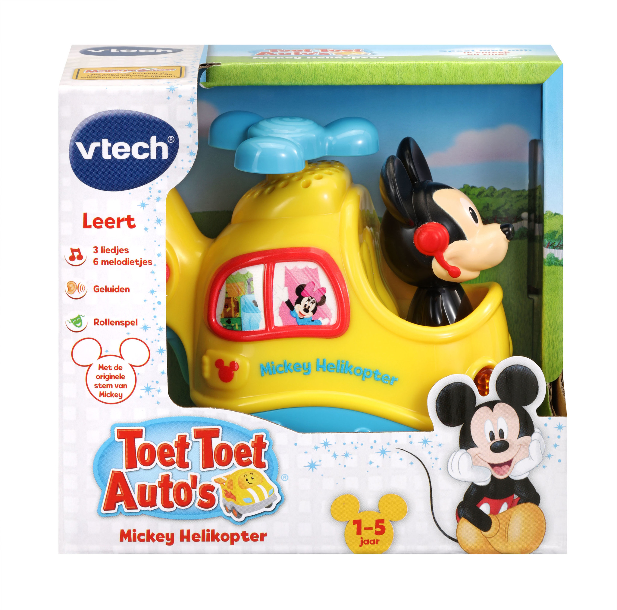 Rijden en leren met de Disney Toet Toet Auto’s! Druk op Mickey in zijn stoere helikopter om geluidseffecten, vrolijke zinnetjes en gezongen liedjes te horen. Beweeg de helikopter en hoor grappige geluiden en muziek. Welkom aan boord!