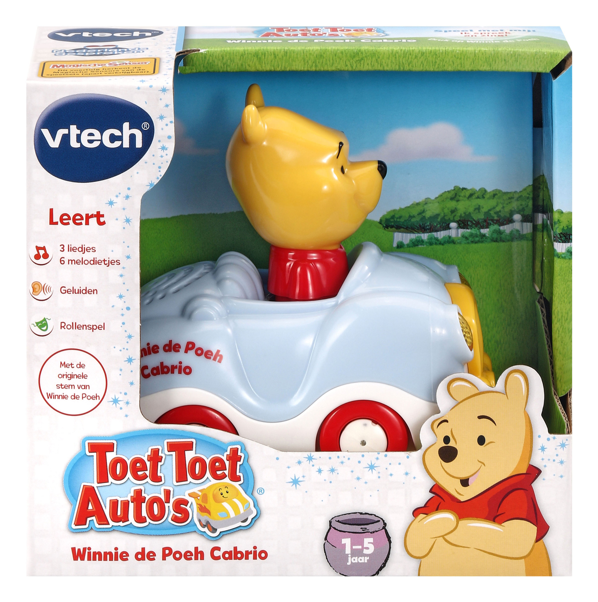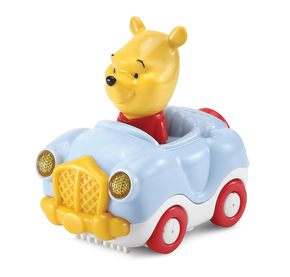 Wat een mooie dag om een ritje te maken! Druk op Winnie de Poeh in zijn prachtige cabrio of beweeg het voertuig heen en weer om grappige geluiden en melodietjes te horen en zie de lichtjes knipperen.
